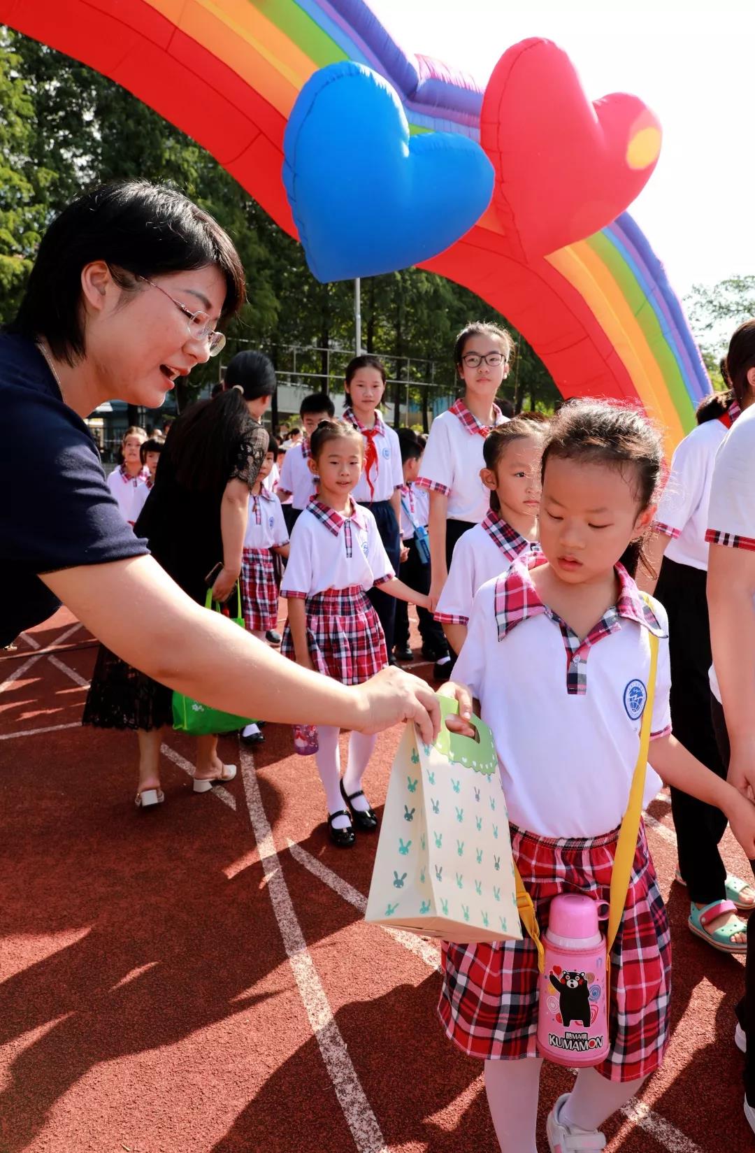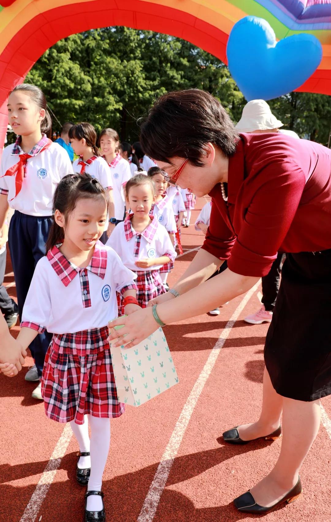 学校领导为每位新同学派发了一份精心准备的“爱心大礼包”——一根跳绳,一枚书签,一颗棒棒糖。希望同学们坚持锻炼身体;以书为友,养成良好的阅读习惯;努力做最棒的自己。