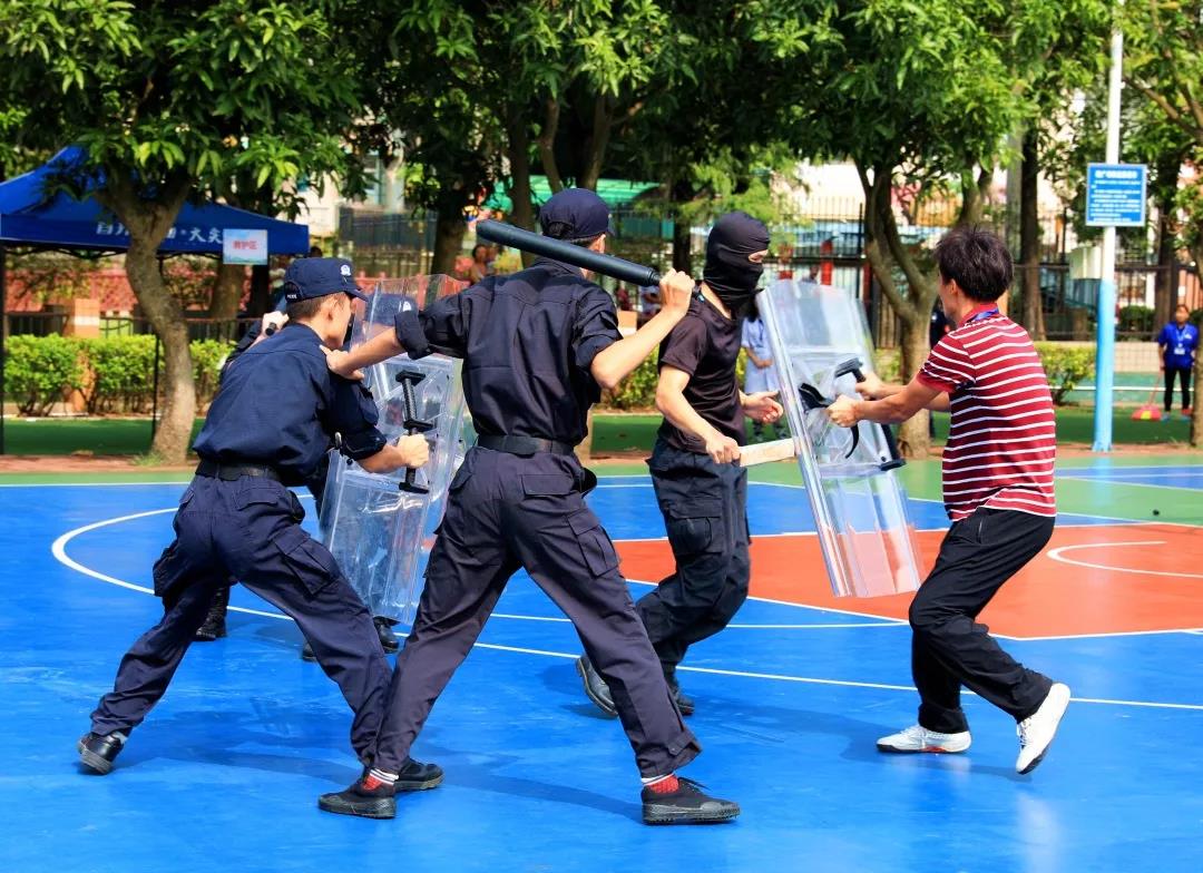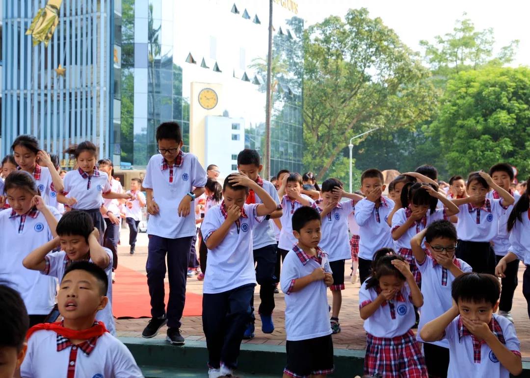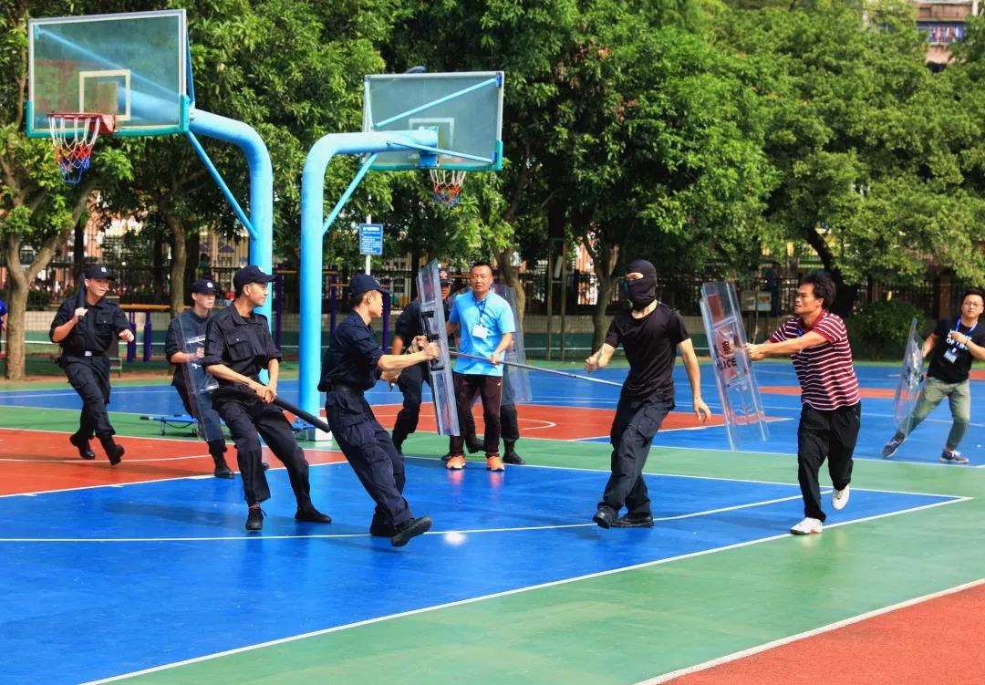 吴玉爱校长在总结发言上他表示,应急逃生关乎每位师生的生命,关乎每个家庭的幸福安宁,关乎学校的稳定发展。今天全校师生以较快的速度,良好的秩序,按照预定的疏散路线迅速、有序地从教室、办公室撤离到指定区域,增强了应急避险的自救能力。他强调,学校将对系列演习活动形成长效机制,进一步加强师生面对突发灾害、暴恐等事件的防范意识,提高自护自救及有效逃生避险的能力,最大限度地减少因突发灾害、暴恐等事件对师生造成的人员伤害,确保学校内部的安全和师生的人身安全。他同时代表学校向广东警盾教官团给予本次演练活动的大力支持表示诚挚的谢意。