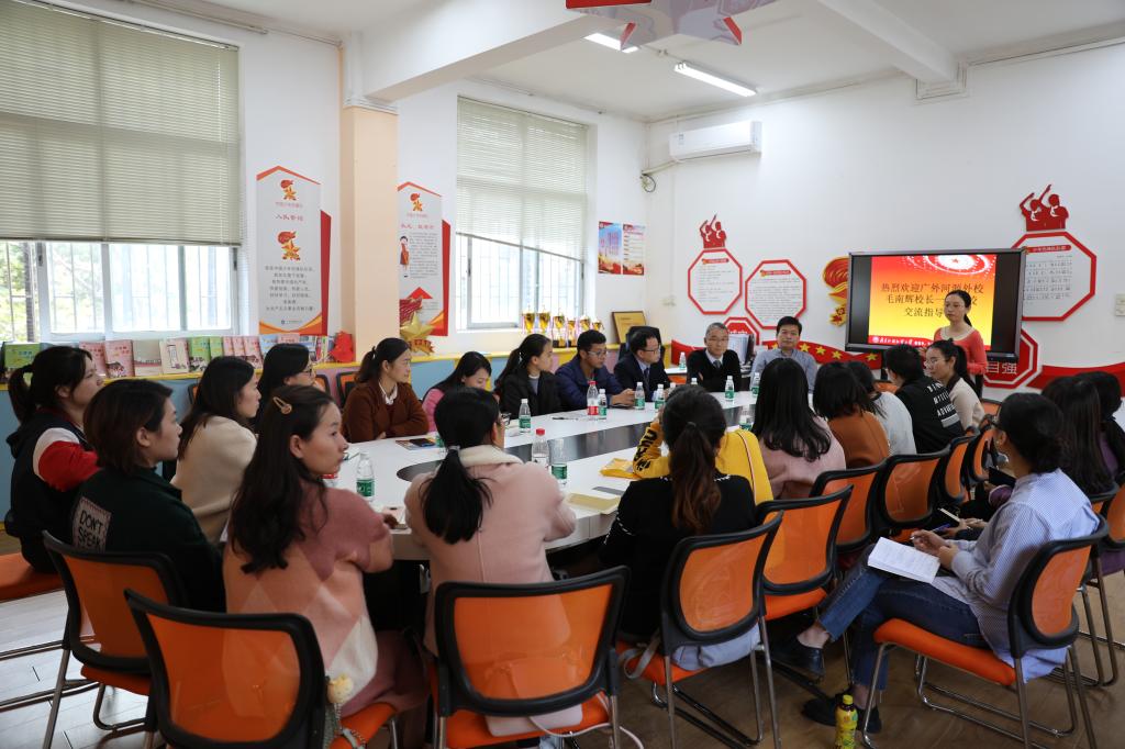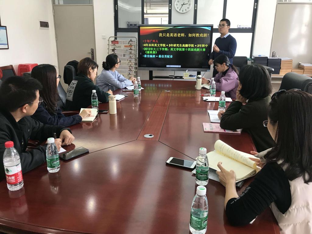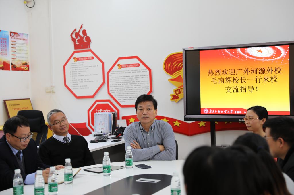 本网讯 12月26日下午,广外河源外校一行二十几人,在毛南辉校长的带领下,到我校进行“关于英语戏剧课堂”系列研讨活动。广外附属中小学全体英语教师,共同参与了此次交流。