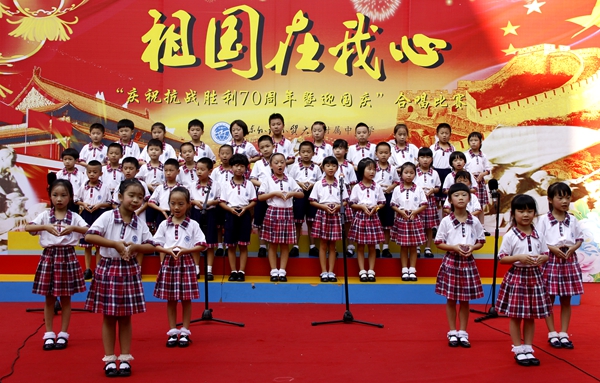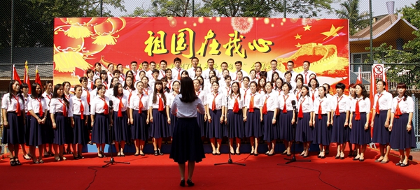“祖国祖国我爱你,我们是你的好儿女,你教我们爱劳动,你教我们爱学习,理想远大志气高志气高,展翅高飞千万里千万里,誓做革命接班人,一颗红心献给你。”合唱比赛在全体一年级同学整齐稚嫩的《祖国祖国,我们爱你》中拉开了序幕。同学们放声歌唱,用最甜美歌声抒发对祖国的热爱,用最纯真的笑容赞美幸福的生活。不论是小学生,还是中学生;不论是经典的《歌唱祖国》《团结就是力量》《我的中国心》,还是充满童心童趣的《少年少年祖国的春天》《听妈妈讲那过去的事情》《我爱北京天安门》,同学们都演唱得真挚深情。台上的学生认真投入地演唱、指挥稳定富有激情地指挥,台下的同学们仔细聆听、认真欣赏。一首首歌曲在学校上空回荡,一阵阵掌声响彻校园。
