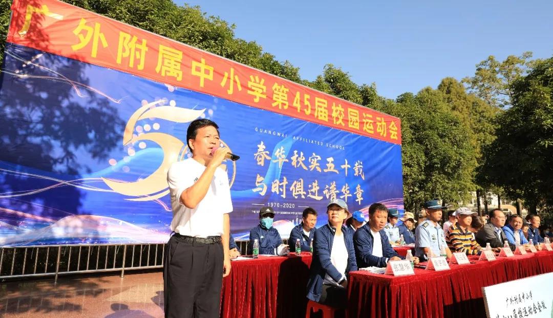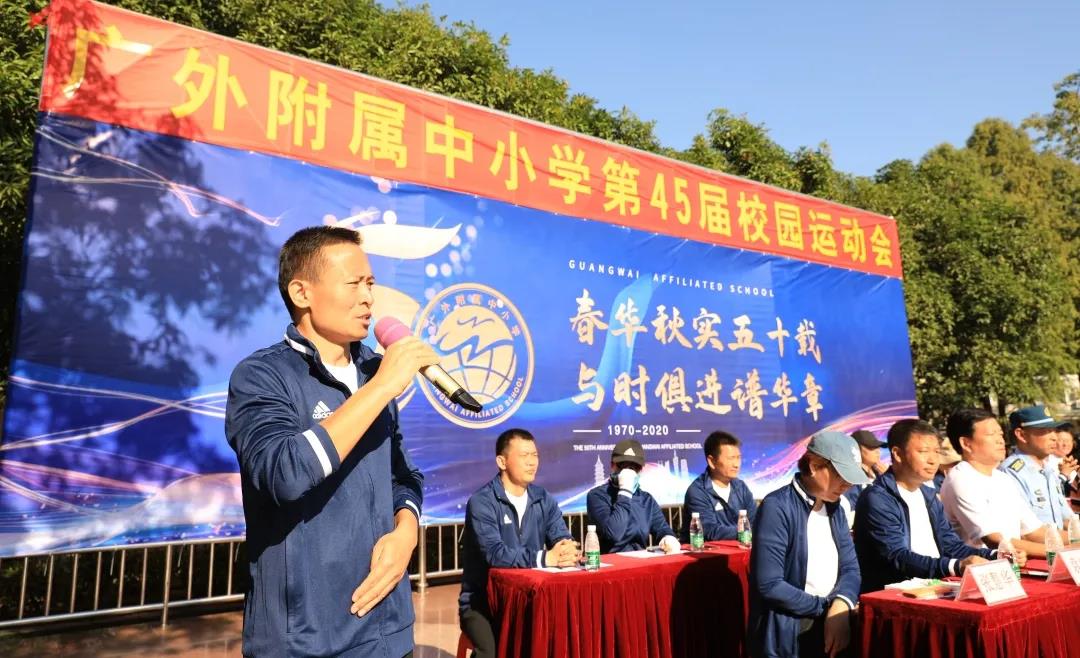 秋高气爽,丹桂飘香;红旗招展,乐曲高扬。11月12日上午,广外附属中小学第45届校园运动会暨18届体育健康嘉年华开幕式隆重开幕。参加此次开幕式的嘉宾有:广外工会林少娜副主席,广外保卫处何越辉处长、广外体育部党委何伟儒书记、广外教育集团党总支部罗海洋书记、空军某部队唐永志政委、广外幼儿园曾晓杰园长。