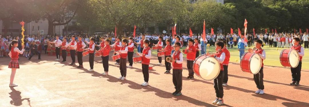 在激昂的国歌声中,五星红旗在附校上空冉冉升起,迎风飘扬。现场庄严肃穆,同学们整装待发。