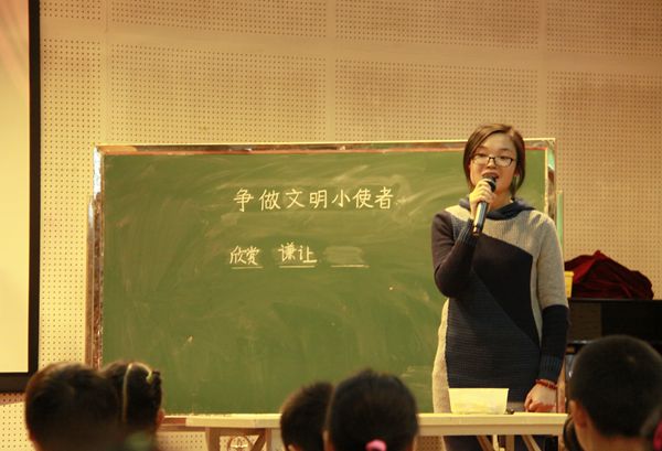 罗燕维老师的《快乐劳动伴我成长》,以“我为爸妈来减负”的感恩活动为背景,通过分享劳动资料、开展劳动大比拼等环节激发学生的劳动兴趣,锻炼学生的劳动能力,逐步培养学生的劳动自觉性,使学生养成良好的劳动习惯。樊师老师的《安全护航,快乐成长》,通过同学们相互交流身边的安全事例了解有关安全的安全知识,从而树立自我安全意识,时刻提高警觉,增强自我保护能力。李群老师的《向国旗敬礼》,通过导入开国大典视频、国旗的历史和设计和不爱护国旗的图片使学生了解到国旗的重要性,继而从升国旗这一环节通过教官的示范对全班同学进行爱国主义教育,让同学们深刻体会祖国的伟大,教育学生学会感恩祖国,激发全体同学的爱国热情。朱中振老师的《团结合作力量大》,从“五指兄弟”的故事导入本次课堂的主题,在“梭子鱼、天鹅和虾合作拉车”“小组合作拼地图”等环节讨论和体验团队合作的重要性和必要性,帮助学生树立正确的人际协作意识,提高社会适应能力。黄一玲老师的《争做文明小使者》,从同桌互夸交流夸人与被人夸的感受、交流搜集到的文明用语、表演小品“课间十分钟”等环节让学生明白讲文明、讲礼貌是小学生必须遵守的日常行为规范,教育学生从身边的小事做起,做一个讲文明礼貌的好孩子。李少林老师的《节能减排,从我做起》,通过展示雾霾的图片,交流雾霾形成的原因和危害从而引出课堂主题“节能减排”。进而围绕主题展开一系列的节能减排妙招,例如利用矿泉水瓶制作笔筒、用快递盒子制作汽车等,让学生了解低碳生活的、节能减排的重要性,培育学生的节俭节约、树立积极向上的环保意识。