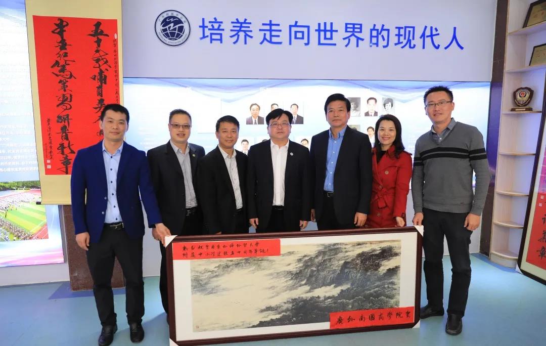 12月2日下午,广东外语外贸大学南国商学院副校长赖志立、旅游校园党总支书记赵爱党、招生就业指导处副处长郑芝鸿一行专程来到学校,对学校50周年校庆表示热烈祝贺。在与学校领导座谈中赖校长、赵书记、郑处长表示,附属中小学的办学理念符合教育发展的方向,教风、学风非常好,南国商学院的很多教师子弟在这里受到了良好的教育。吴校长代表学校,非常感谢南国商学院及赖校长等多年来对我校的认同和关心,希望今后能多方面进行合作,为他们提供更多的教研、实习基地。