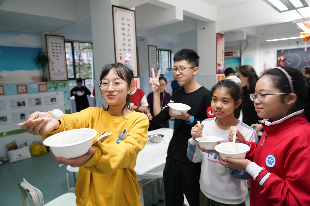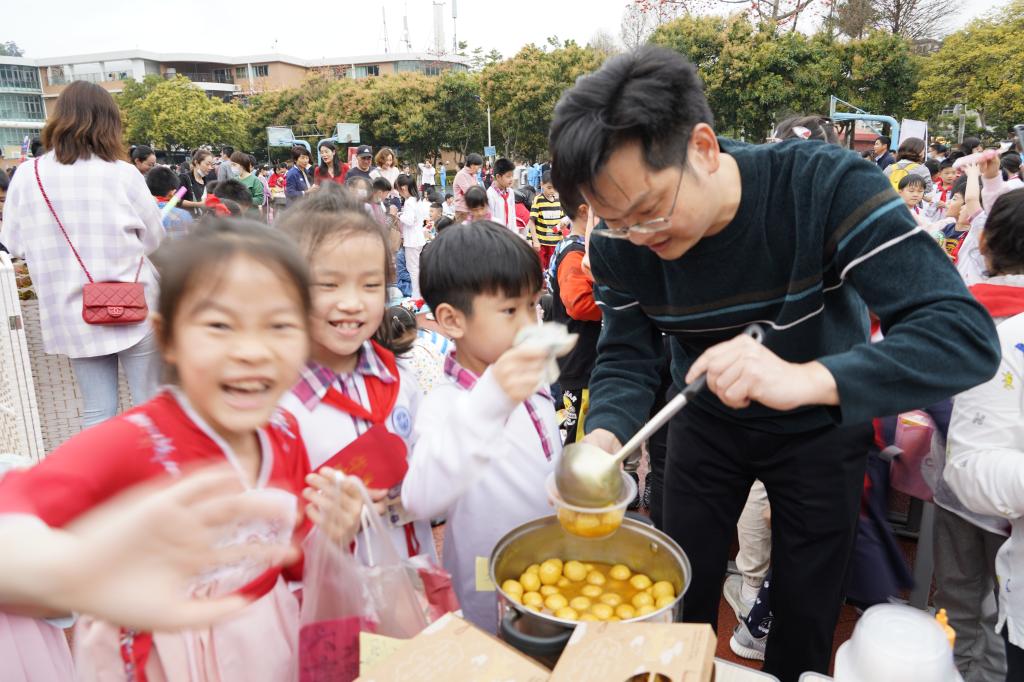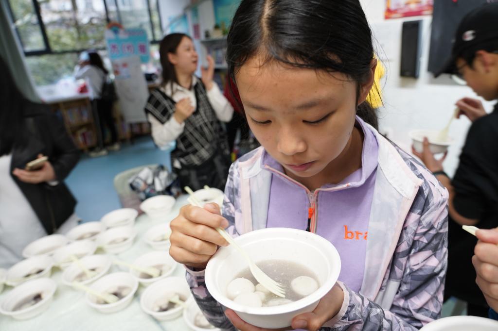 “元宵鼓鼓,幸福满满;元宵甜甜,快乐绵绵。”在同学们参与快乐的游园活动时,教室里面,老师和家长早已为大家煮好了一锅热腾腾的汤圆,有芝麻馅的,有花生馅的。有的班级还亲手包起了汤圆,汤圆甜甜的味道,在教室中蔓延。同学们满足地捧着汤圆,温馨地围坐在一起品尝,一起享受此刻欢聚时光,甜蜜时刻。