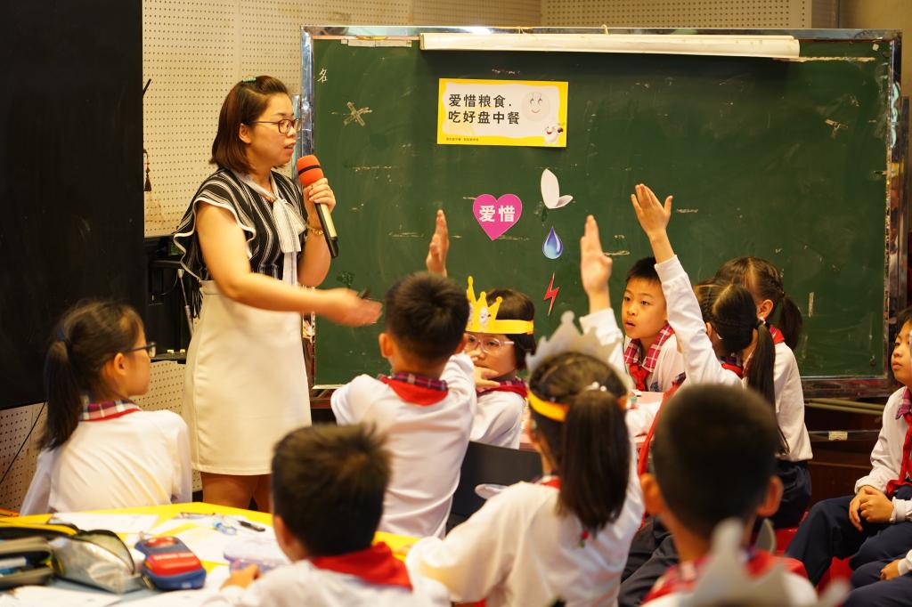 叶佩英老师的课程主题为《爱惜粮食,吃好盘中餐》,本课以孩子们午餐时的各种浪费现象为背景,通过观看小米粒的成长故事,体会农民的农耕不易,激发了孩子们爱惜粮食的意识。叶老师还与孩子们列举讨论了身边的浪费现象,并找到杜绝浪费的好办法,课堂上孩子们思想碰撞,精彩绝伦。