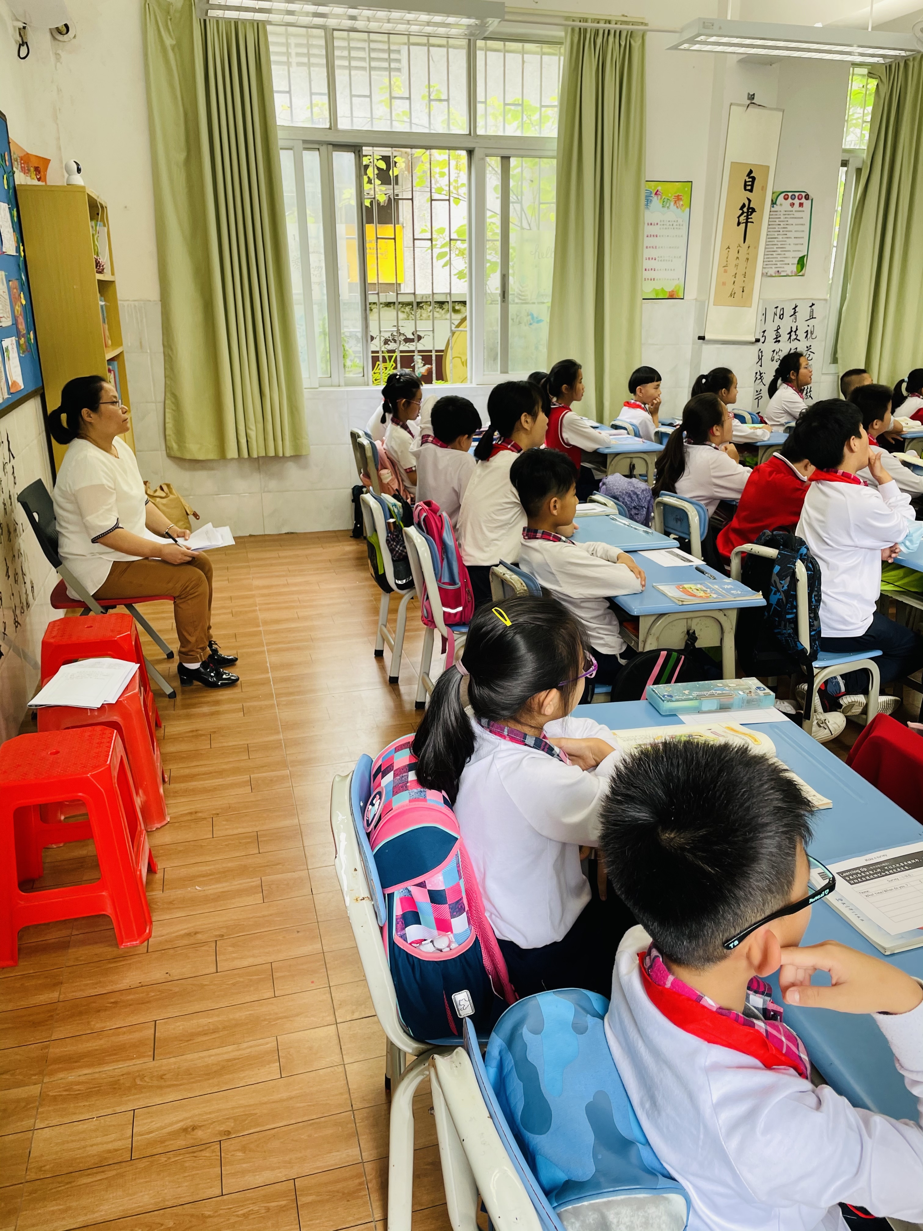 八名督导成员在我校各部门负责人的陪同下,分别在各个年级随机听取语文、数学、英语、音乐、美术、道法、科学、信息、体育等13节课程,并在课下与学生和授课教师亲切交流。