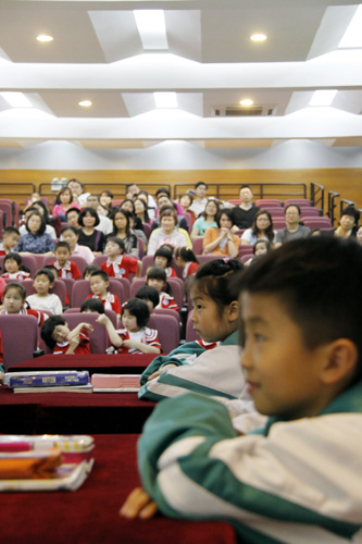 本网讯 3月27日下午,广外幼儿园大班约100名小朋友们在老师和家长们的带领下来到广外附小参加幼小衔接活动。幼儿园的小朋友和家长们在附小老师的指引下参观了附小校园,并在礼堂观摩了一2班张玉静老师的语文课。一年级级组长聂芹老师详细地向家长们介绍了小学一年级招生计划、报名方法、面试注意事项、入读一年级的准备等,让家长们了解了学校的招生情况。