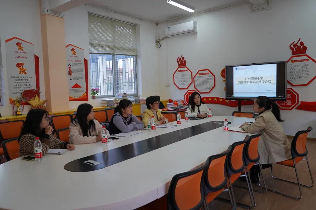 随后,江副校长一行和我校小学课程教学中心副主任唐龄、英语组组长喻安婷在大队部活动室进行了交流。唐主任向大家介绍了我校整体课程规划、英语教学与课程设置等情况,并着重介绍了英语戏剧课程及其分层作业设计。汪副校长和英语组的老师们分别对汪蓉老师的课堂进行了点评,并一一分享了各自的教学心得。双方均表示在此次交流中受益匪浅,学到了许多关于英语课堂减负增效的先进经验。