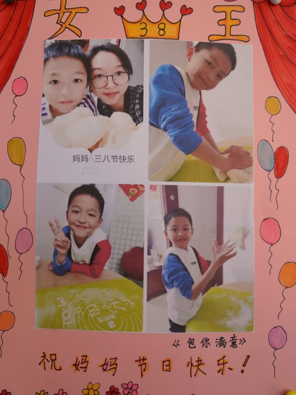 在“女神节”来临之际,我校各年级的同学们纷纷动手给妈妈、给奶奶、给外婆、给老师制作手工、贺卡,把帮忙做家务、亲自下厨房做饭、包饺子等对亲人的爱记录下来,把特别的爱注入到制作的主题手抄报中,来表达对亲人的感恩与对女神节的祝愿。