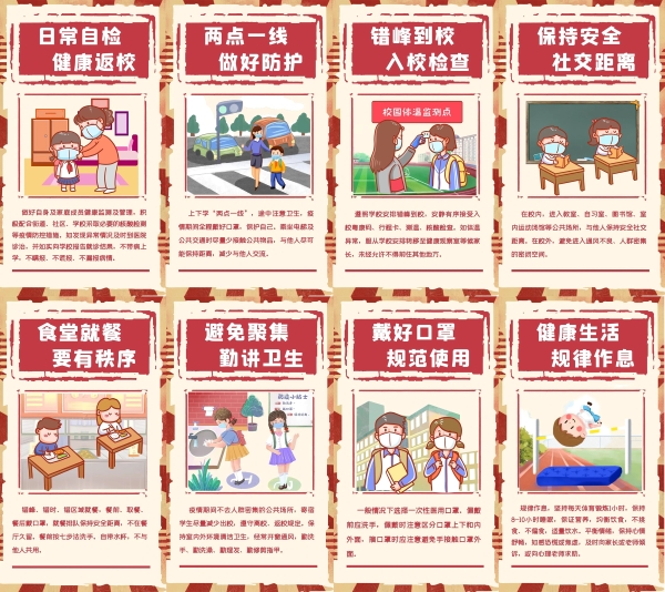 与此同时,疫情防控还绝不可松懈,老师、家长和同学们要注意做好个人日常防护,共同筑牢校园疫情防线,做到健康返校,平安回家。
