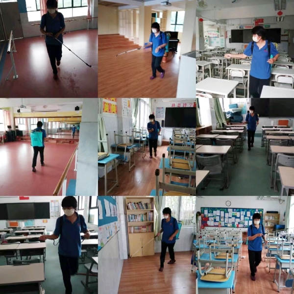 为了迎接师生回家,学校后勤服务中心对校园里各个教室、功能室、办公场所等进行了全面的消毒,确保给大家提供一个安全卫生的学习环境。