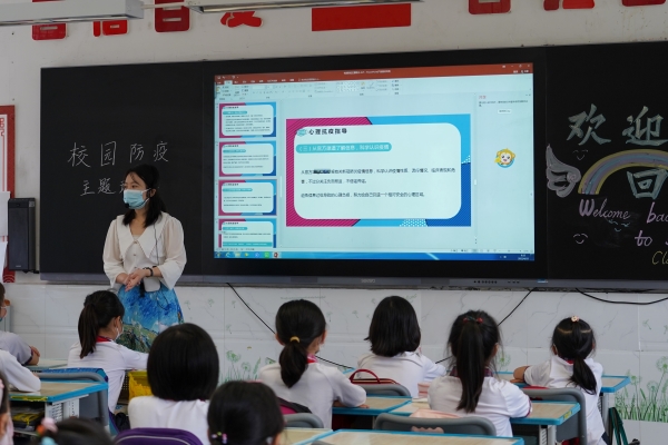 中、小学各班利用线上升旗仪式和返校复课主题班会,为同学们调适居家学习及复课后的心理状态;给同学们科普新型冠状病毒的相关症状,讲解如何科学地预防病毒,如何通过良好的饮食习惯及运动来提高个人免疫力,坚持做好个人防护,做到勤洗手、科学佩戴口罩、讲卫生、少聚集等;同时,在课堂上展示居家学习期间学生的学习、生活照片,分享同学们的家务劳动成果。