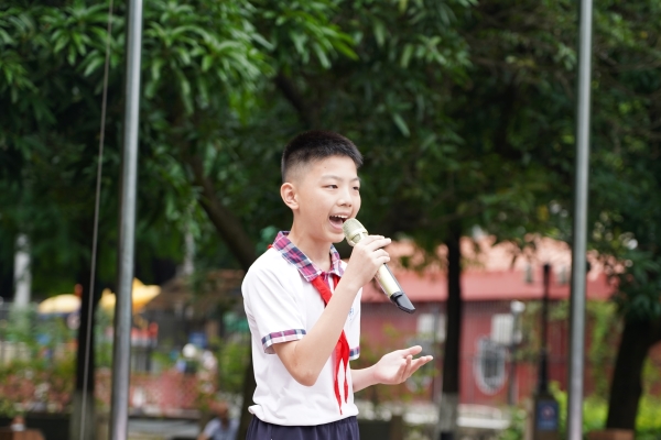 “最是书香能致远,腹有诗书气自华”,六(3)班叶聿杰同学作为“书香少年”的代表充满激情地发表以《以书探千古》为题的演讲。叶同学在书籍的带领下,看遍了千载华夏,品读到了书里人物的百味人生,书籍引领他更好地探索未知的世界,更好地完善自我,他鼓励同学们要与好书为伴、博览群书,在书海中探寻多姿多彩的世界。