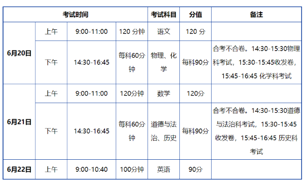 广州中考时间安排表