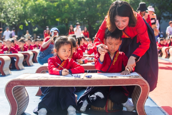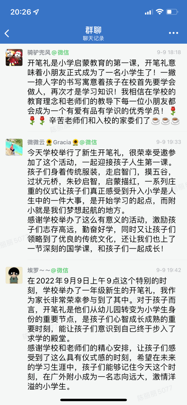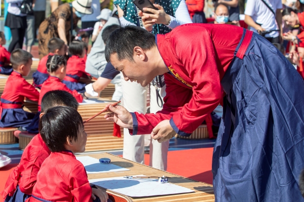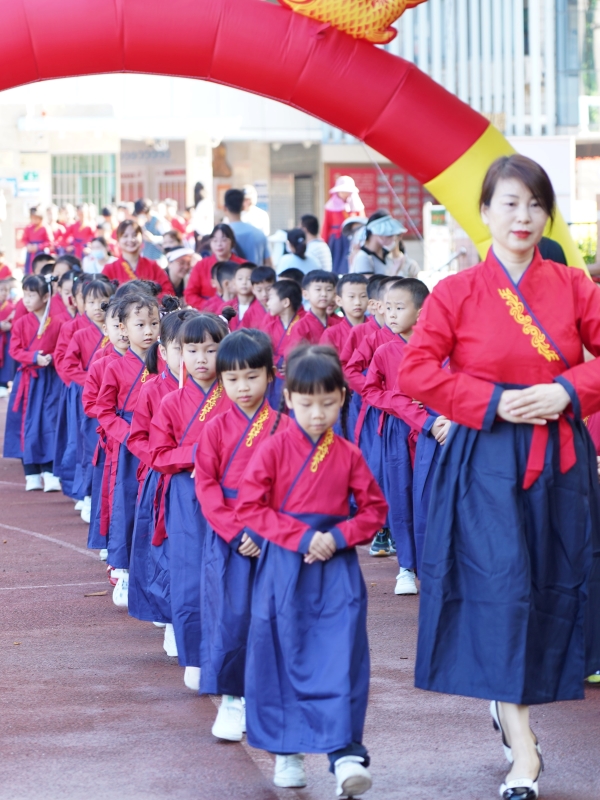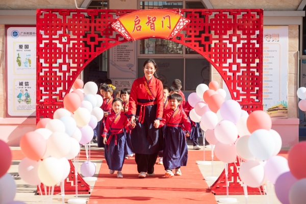 为了激励小一新生们珍惜读书的时光,激发他们的求知求学的热情,增强他们对中国传统文化的了解,2022年9月9日上午,在这个寓意长长久久的日子里,白云外国语小学在学校大操场隆重举行了“开笔启智 礼润童心”一年级新生开笔礼。广外教育集团罗海洋书记、全体校领导、中层干部、一年级师生和部分家长代表参加了活动。由孙伟老师、六年级陈芷汀同学和一年级徐奕芃同学共同主持。