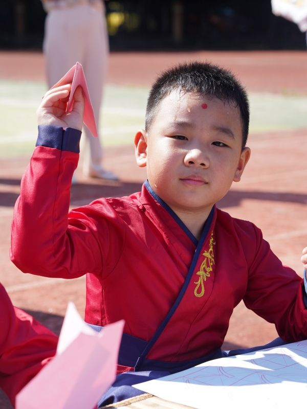家长、老师和孩子们一同放飞承载祝福与期望的小小纸飞机,让梦想随着纸飞机在空中驰骋,愿孩子们能努力学习、不负时光、快乐成长、奔赴未来,争做新时代好少年!