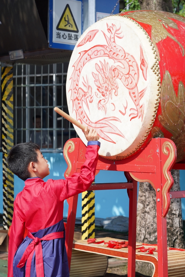 击鼓,勤奋读书;再击鼓,锻炼身体;三击鼓,强国有我!年级组长聂芹老师带领学生代表庄严又神圣地击鼓鸣志,每一声鼓声都寓意着崭新的希望,击鼓三通,打开孩子们的漫漫求学路。