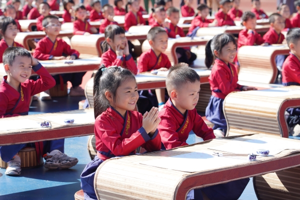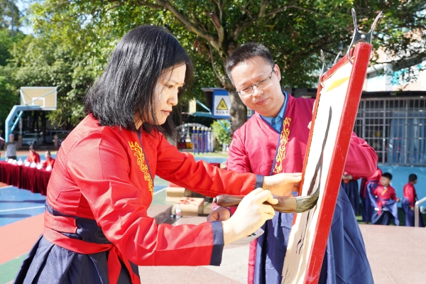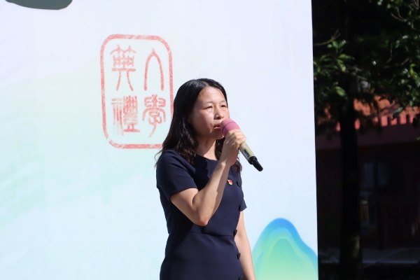 黄哲昙校长助理祝贺一年级的小朋友们正式成为一名小学生,她希望同学们能在中国传统文化的浸润中,学会亲圣贤、亲师长、亲友人、亲学校、亲祖国,“爱众亲仁,乐学笃行”,做有理想,有道德,有文化,有纪律的人。