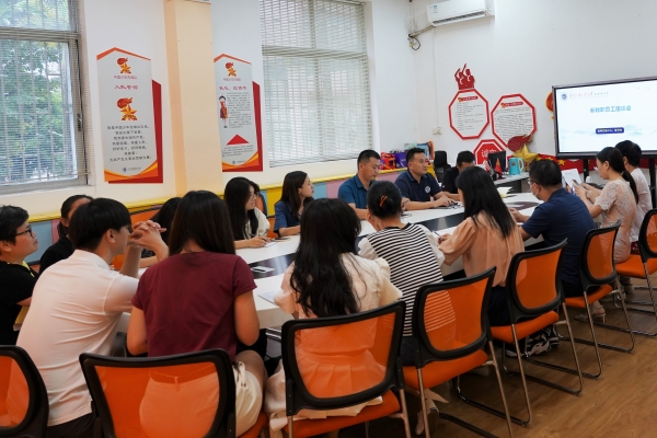 为加强教师队伍建设,帮助新教师更好地适应学校的教育教学工作,尽快融入到学校的生活中,2022年9月20日下午,白云外国语中、小学在学校大队部举行了2022年新入职教师座谈会,全体校领导及部分中层干部出席了会议,会议由教师发展中心副主任文莉主持。