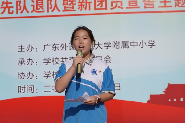 为迎接中国共产党“二十大”的胜利召开,传承红色基因,激励青少年成长。白云外国语中学于2022年10月10日上午在学校大操场举行了以“告别红领巾,追逐青春梦”为主题的少先队退队暨新团员宣誓主题活动。方建军校长、涂筱辉书记及中学全体师生出席了本次活动。