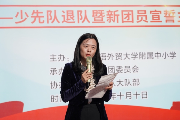接着,由大队辅导员邓少林老师宣布少先队退队决定。