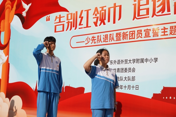 初三年级的同学即将由绚烂多彩、如幻似梦的童年,迈入热情洋溢、朝气蓬勃的青年时代。少先队退队暨新队员宣誓仪式在雄壮的国歌声中拉开了帷幕。