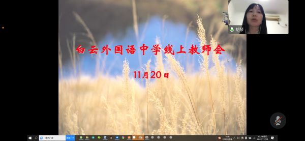 守方寸小屏,倾偌大用心。为了确保线上教学的高效质量及线上综合训练顺利开展,白云外国语中学于11月20日通过腾讯会议平台进行全体教师会。