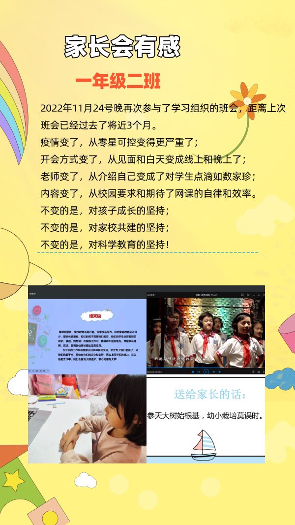 为进一步加强家校沟通,提高线上教学质量,助力一年级学生健康成长,白云外国语小学一年级各班于2022年11月24日通过腾讯会议平台组织召开了线上家长会。