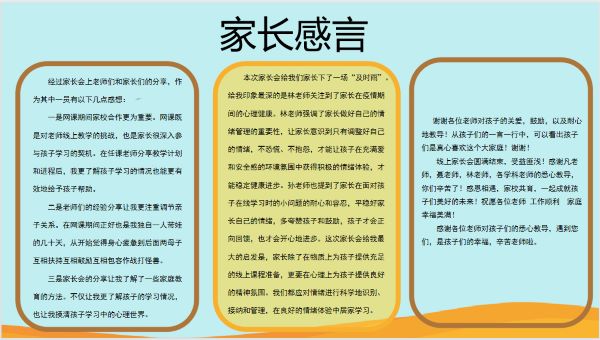 这次线上家长会给老师和家长们打造了很好的沟通平台,拉近了家校之间的距离,增强了家校之间的联结,明确了接下来家校共同努力的方向,达到了预期的效果。本次家长会已落下帷幕,但育人的道路我们一直走在路上,愿我们一同为学生保驾护航,向着更美好的远方携手前行。