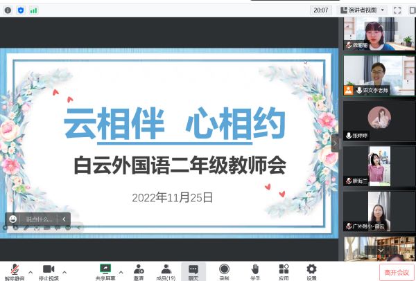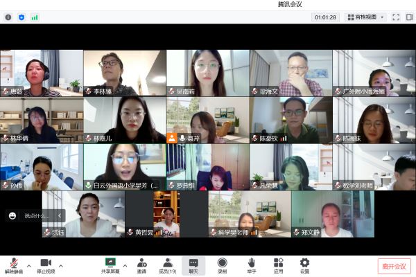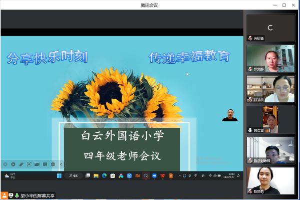 六年级组的老师们在2022年11月16日晚上8:00齐聚腾讯会议,开启了白云外国语小学第一场年级组教师会议。聊聊自己网课期间的幸福二三事。