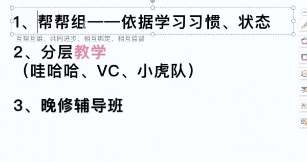 ①小组积分制,组长固定,小组成员每周更换,将学生网上课堂的行为习惯纳入考核,提高积极性。