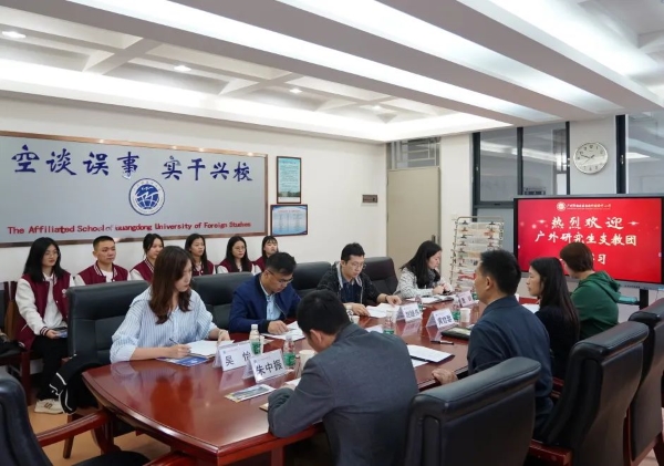2023年4月10日上午,我校在第一会议室举行了与广东外语外贸大学研究生支教团实习生的见面会,广东外语外贸大学团委刘郎书记、赵继伟副书记和吴怡老师带领8名研究生支教团实习生参加了会议。我校方建军校长、黄哲昙副校长、朱中振校长助理、小学课程教学中心唐龄主任热情接待。会议由校办陈丽丽副主任主持。
