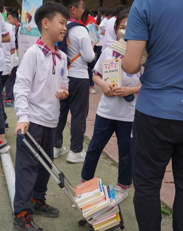 为了在校园内营造多读书、读好书的良好读书氛围,增加学生的阅读量,拓宽图书借阅的渠道,让学生学会资源共享,同时培养学生社会实践能力、人际交往能力。2023年4月14日下午,白云外国语中、小学在学校大操场开展了第13届读书节系列活动之“图书漂流”活动。