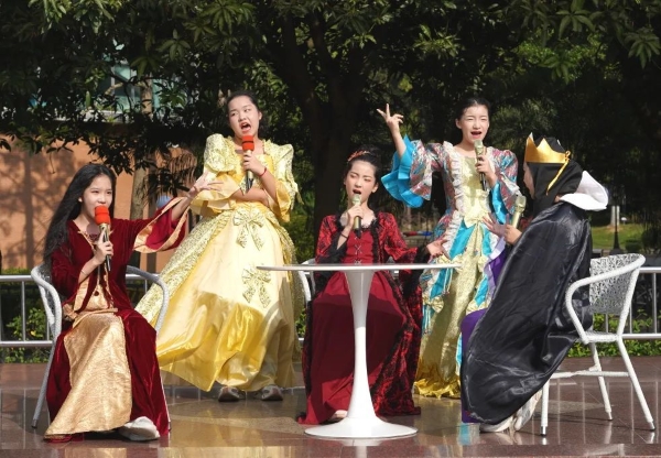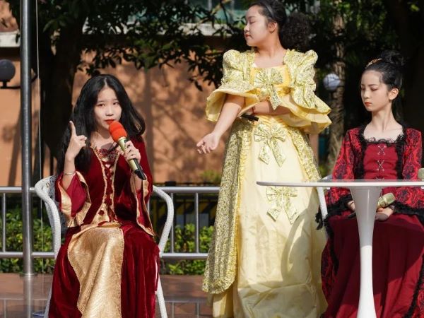 庄严的升旗仪式后,六年级(4)班同学带来了英语节目表演《Tough Love!》,她们精心准备了服装,把茶话会演绎得惟妙惟肖、活灵活现,语音语调标准流利。节目由梁海文老师指导。