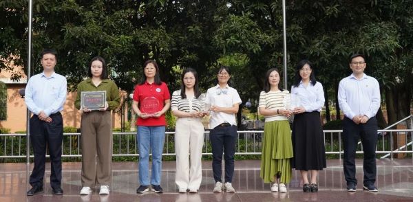 方建军校长、朱传兵副书记为“广外杯”英语戏剧展演指导教师颁发奖项;朱中振校长助理、陈丽丽副主任、李红海主任、胡琴主任、林旭丽主任、钟慧珍团委书记为“广外杯”英语戏剧展演参演学生颁发奖状。