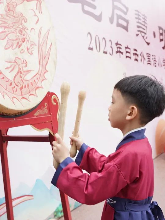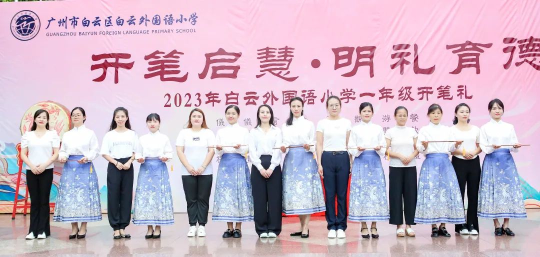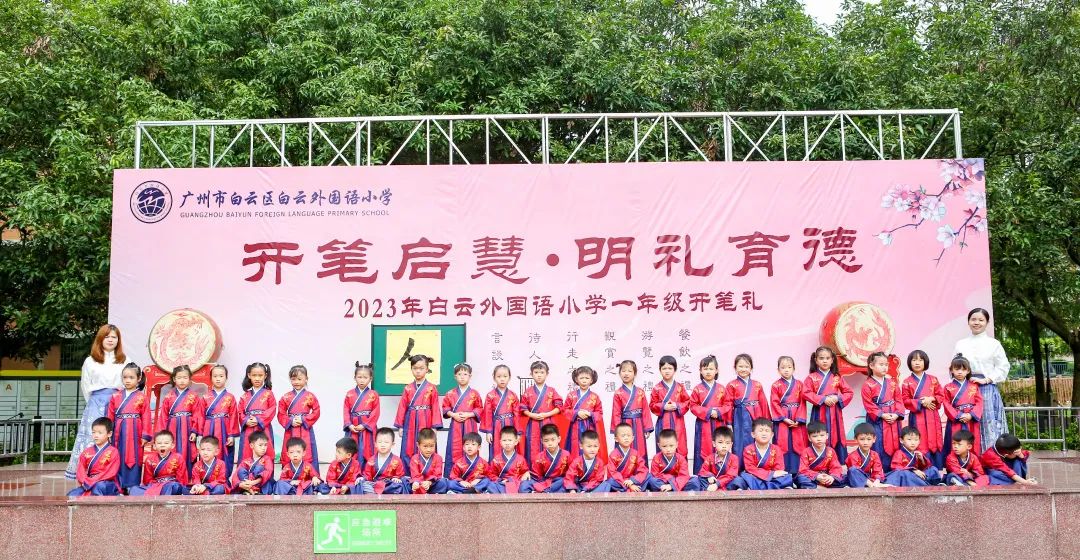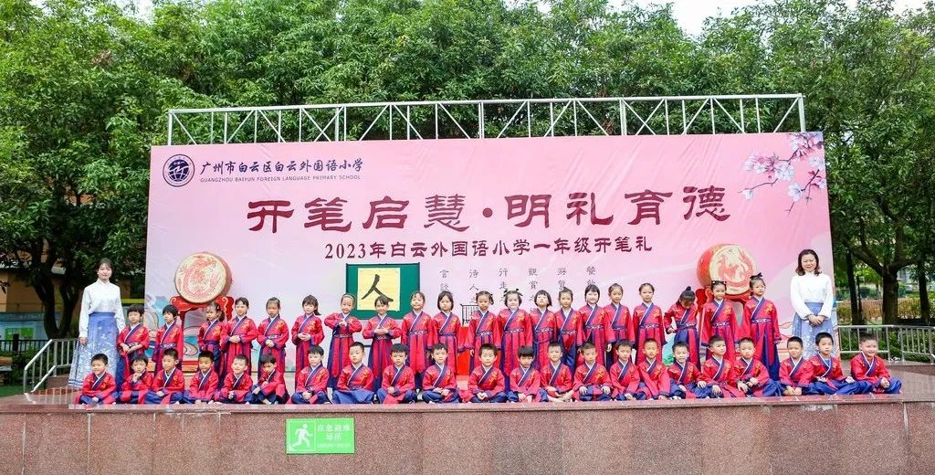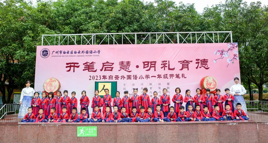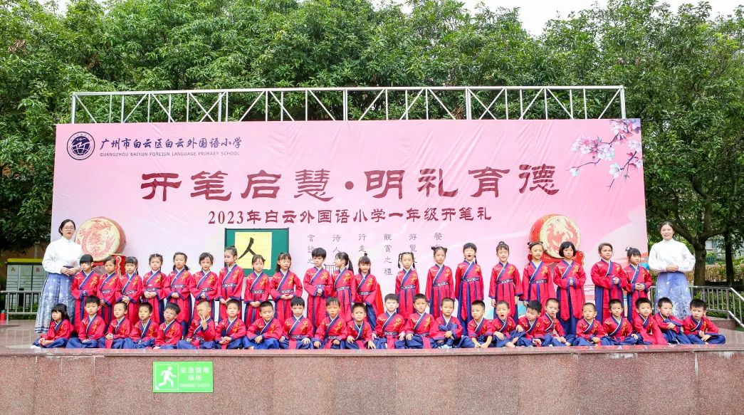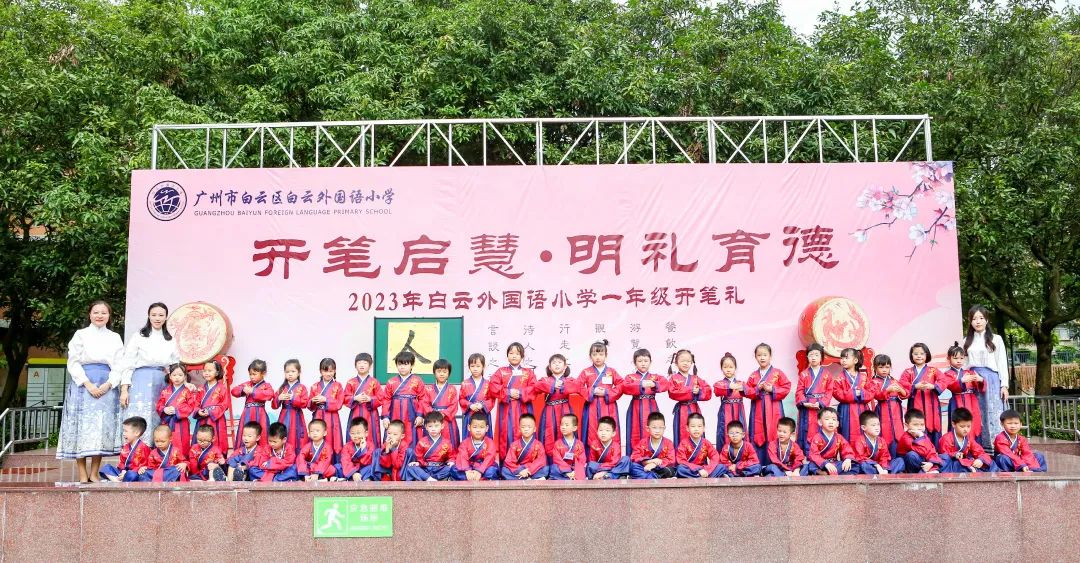 为了让一年级新生感受到入学是人生中的一件大事,是学习的开始,激励他们珍惜读书机会,勤奋学习,弘扬我国优良的传统文化,2023年9月13日上午,白云外国语小学在学校大操场隆重举行了“开笔启慧·明礼育德”一年级新生开笔礼。广东外语外贸大学教育合作与发展中心党委副书记、纪委书记贺静,我校全体校领导、中层干部、一年级师生和家长们欢聚一堂,共庆一年级“开笔礼”。