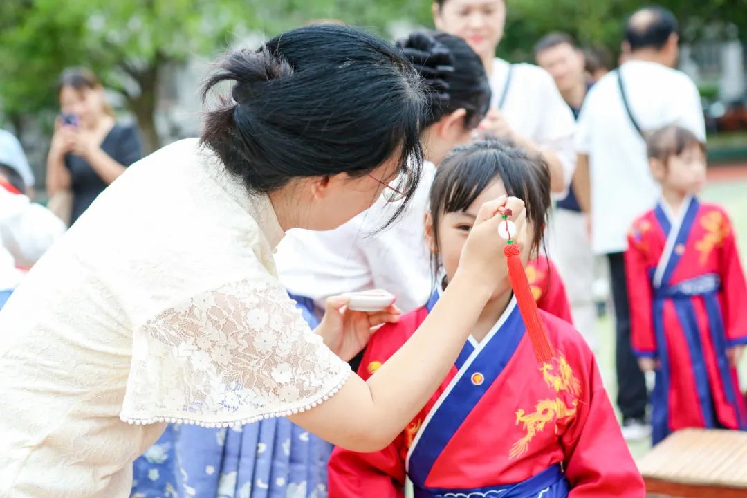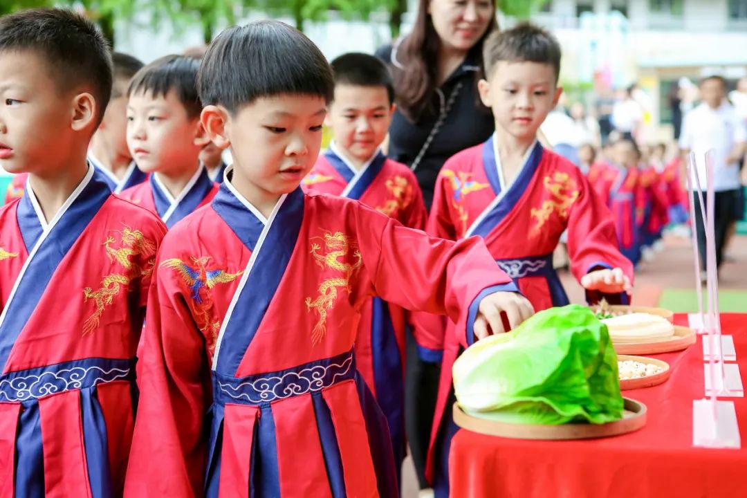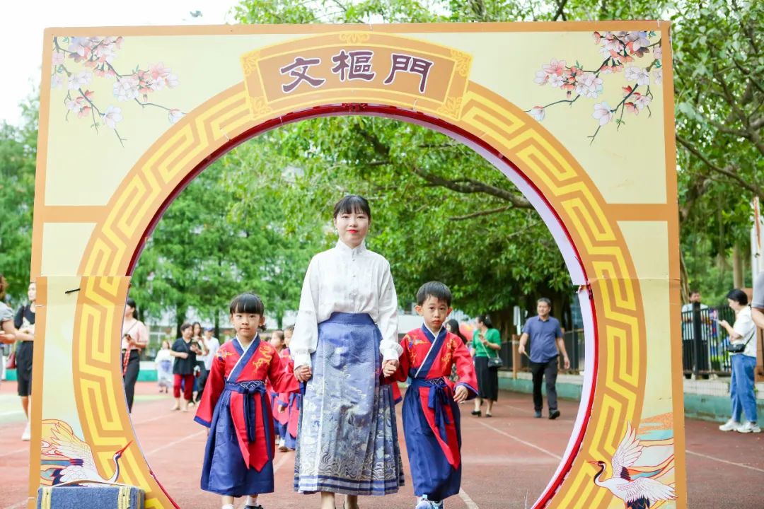 朝气蓬勃的一年级新生们在老师的带领下走过启智门,开启人生路上的智慧之门。希望学子们在感受传统文化浸润身心的同时,“尊师爱学、孝顺父母”的种子也在心中生根发芽。