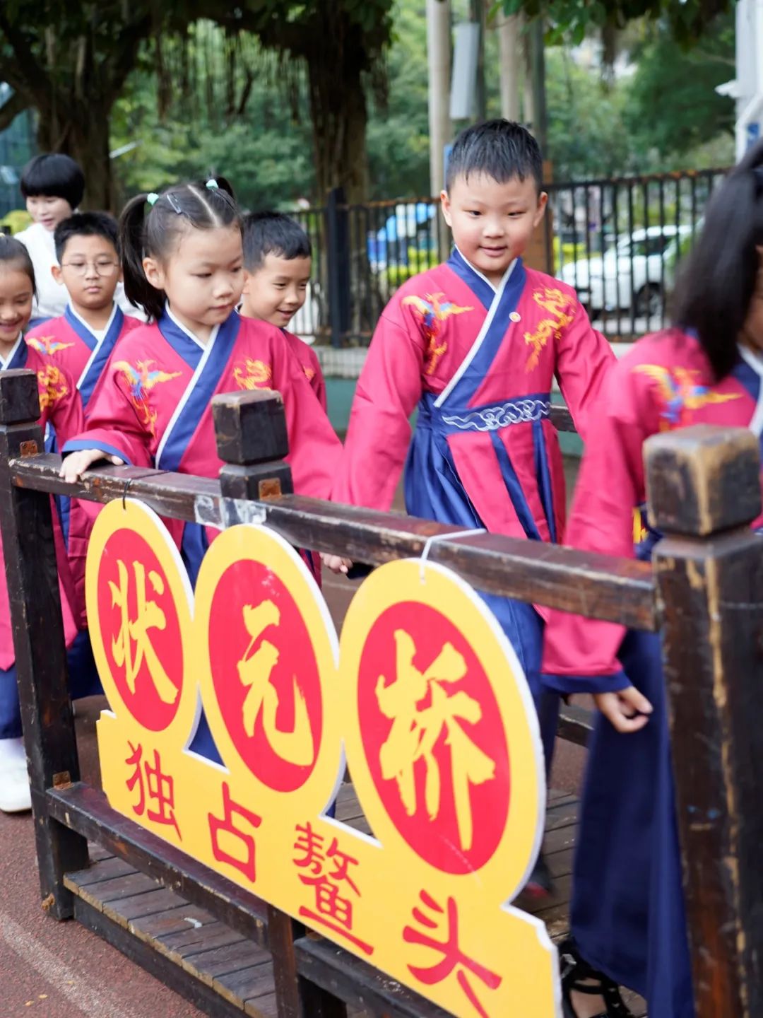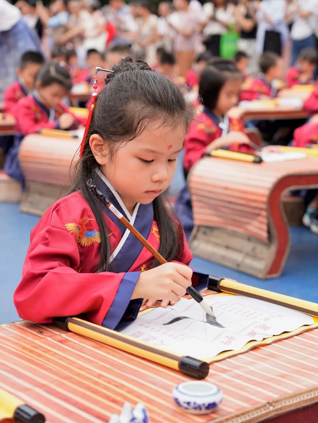 一年级的孩子们通过摸五谷、过状元桥,正衣冠,感恩教师、礼拜师长,诵读经典,点朱砂,开笔写“人”,击鼓鸣志,放飞梦想等环节,学习中华优秀的传统文化,学做明礼守礼的小学生,开启小学生活新篇章。