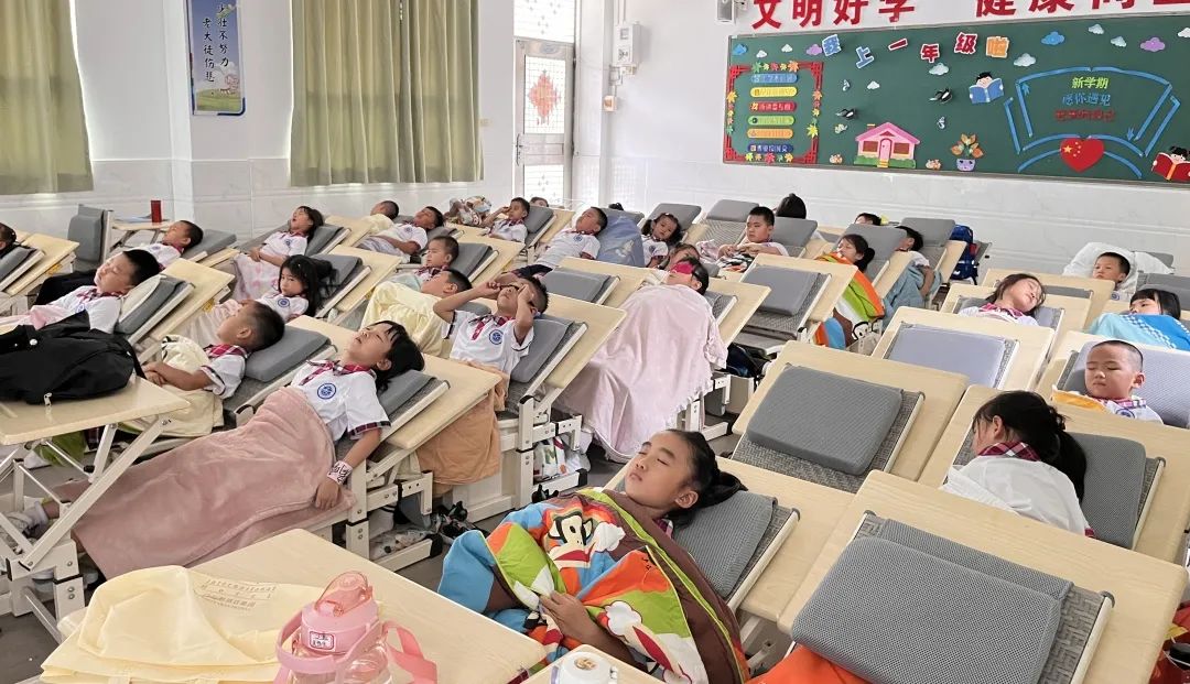 学校首批为一年级每个班都配备了崭新的平躺睡课桌椅,提升孩子在校午休的质量,助力孩子健康、快乐地成长。
