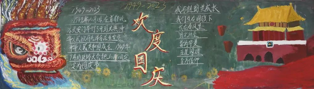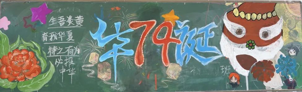 中学各班同学利用课余的时间,围绕国庆相关主题,发挥天马行空的创意,绘制出一幅幅精美绝伦、内容丰富、形式多样的黑板报,真挚的祝福语、排版整齐的文段,表达了孩子们对祖国的热爱与美好祝福。