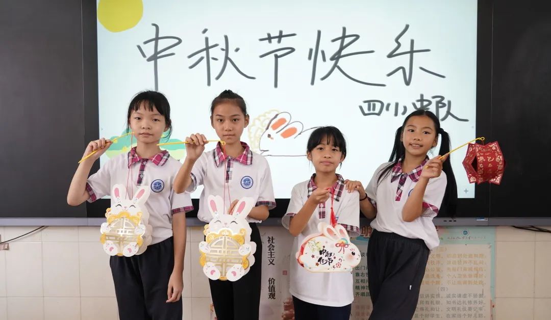 白云外国语小学各年级通过巧手做灯笼、猜灯谜、折玉兔、绘制国庆主题手抄报等活动,迎接中秋佳节,庆贺祖国华诞。