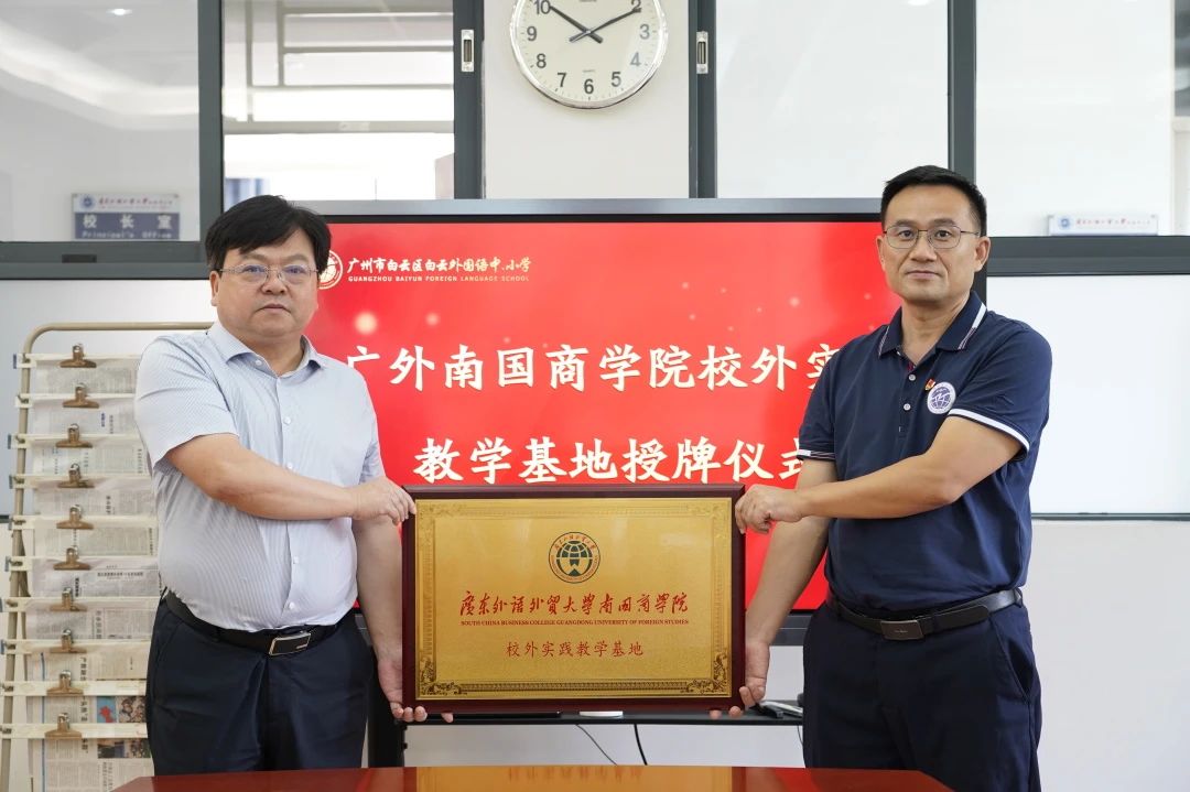 为进一步加强我校与广外南国商学院的教育合作,充分利用广外南国商学院的人才资源,发掘我校人才培养的潜力,广外南国商学院与我校建立了深度的合作关系,我校被授予广外南国商学院的校外实践教学基地,双方在我校第一会议室进行授牌仪式。