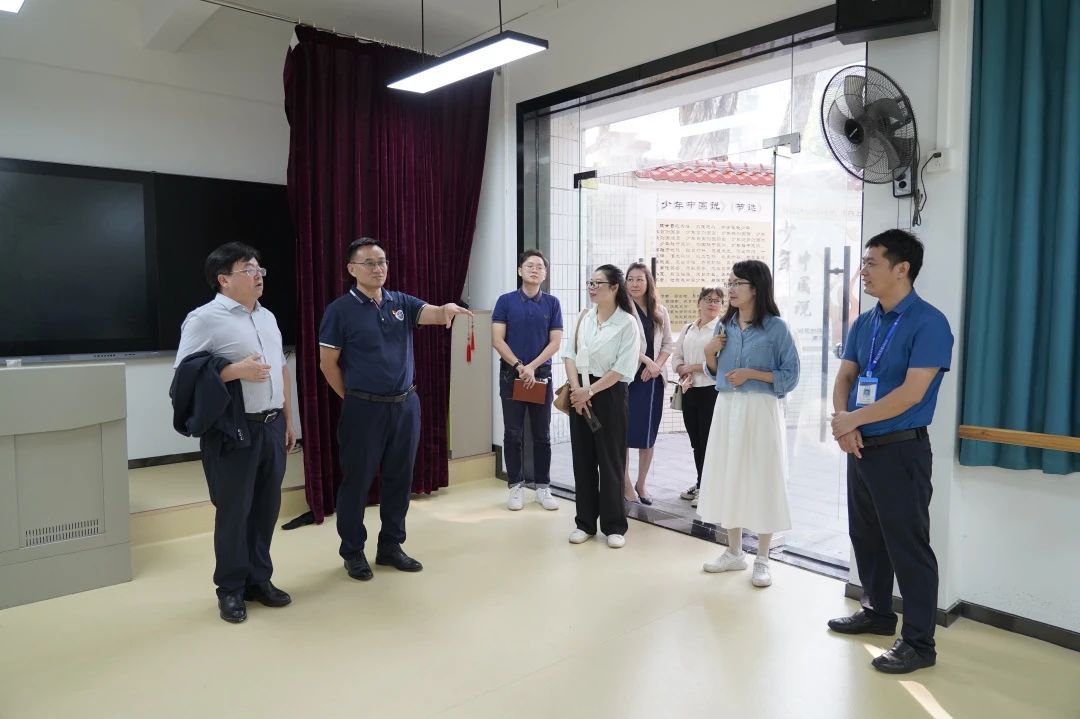 广外南国商学院及九三学社南国支社一行在我校方建军校长、朱中振校长助理等领导的陪同下参观了我校的校史室、舞蹈室、云山礼堂、书法长廊等。