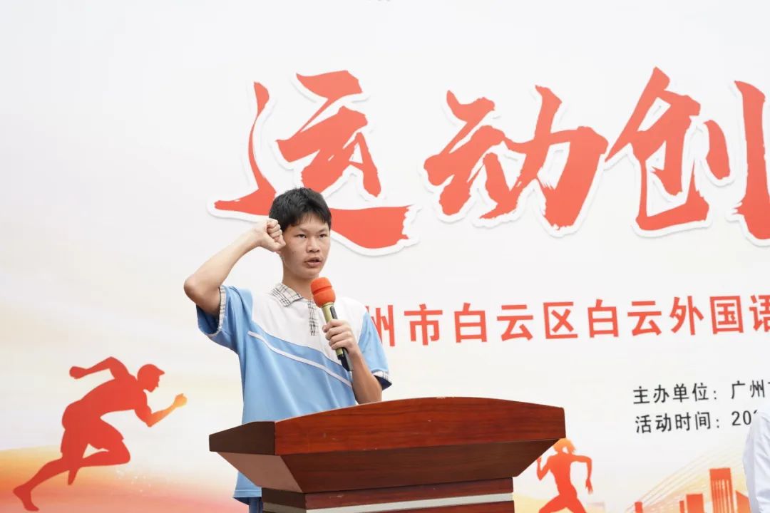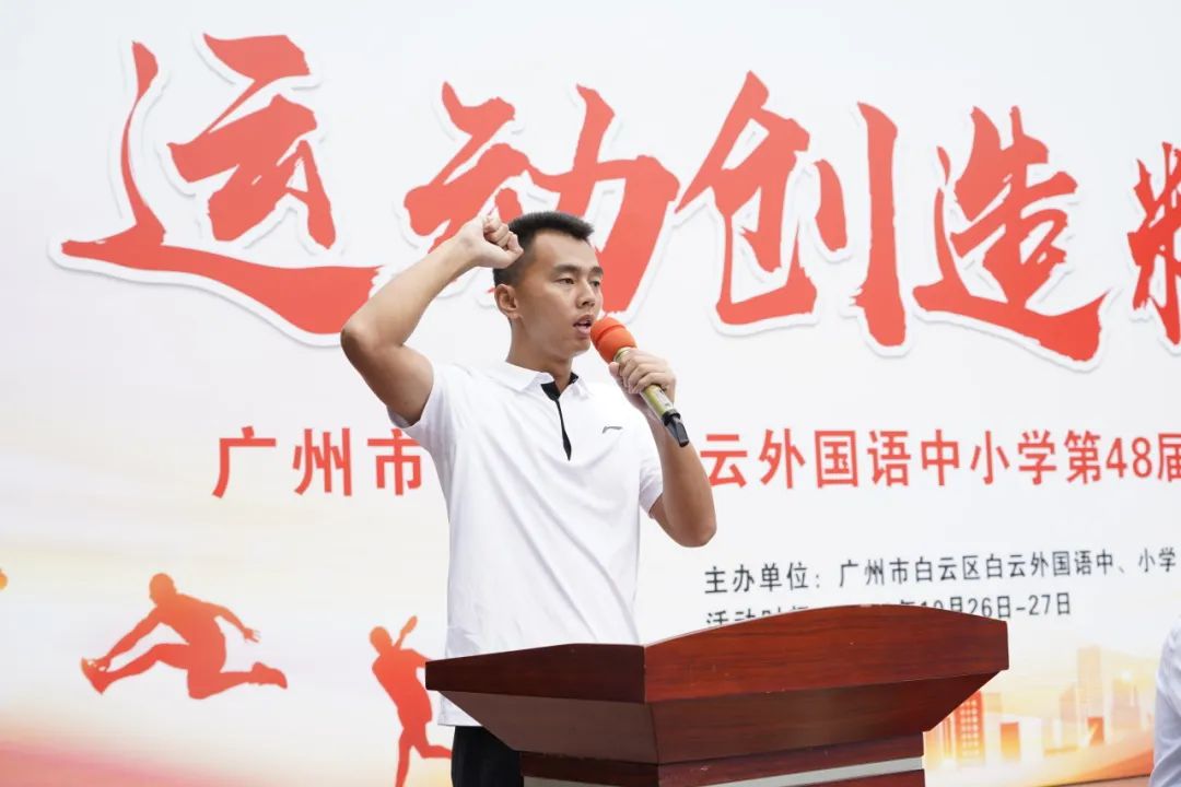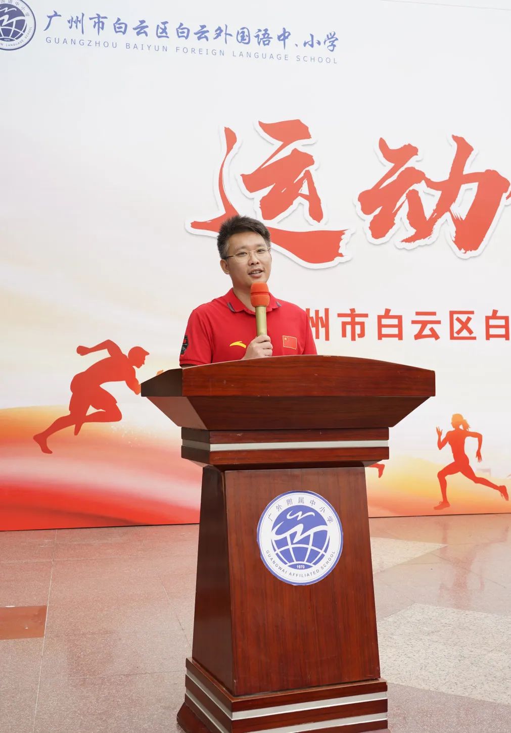 我校方建军校长宣布白云外国语中小学第48届田径运动会正式开幕!