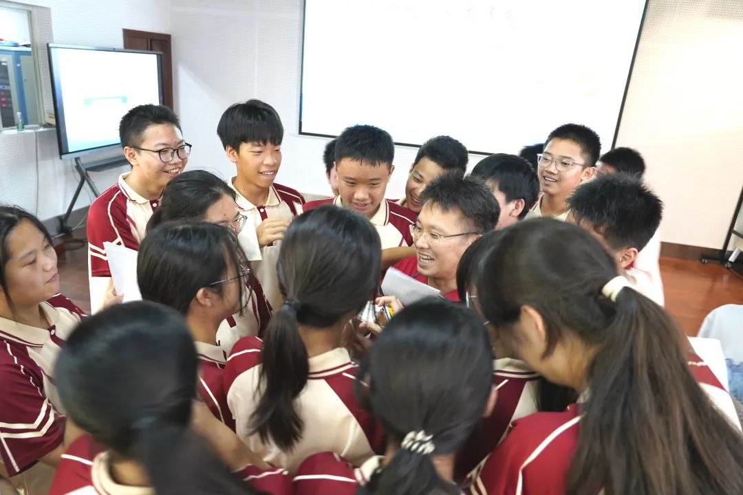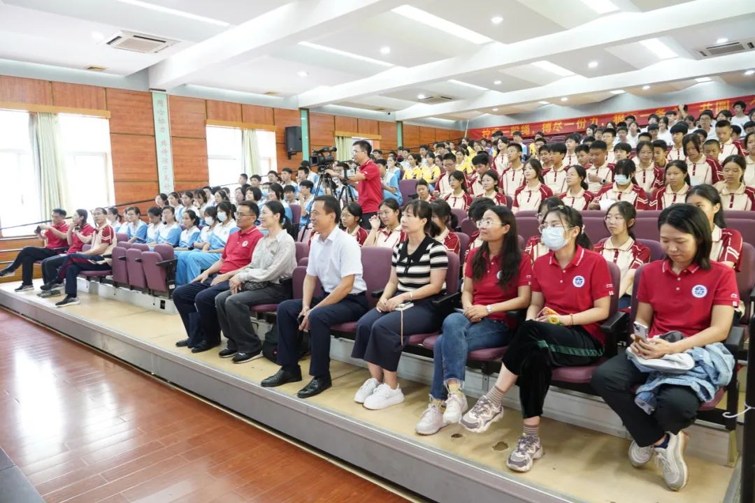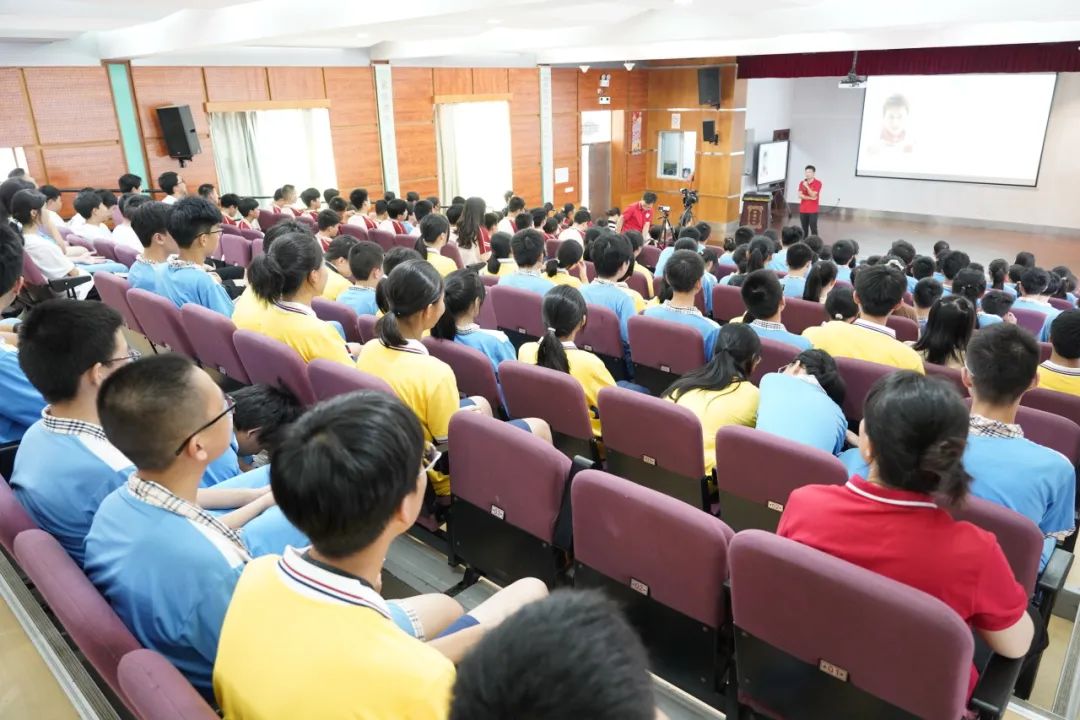 运动会开幕式之后,奥运冠军罗玉通在学校礼堂为全体初中学生作题为“踔厉奋发、立志有为”的讲座。初三学生在现场观看并互动,初一、初二学生在各自教室观看直播。