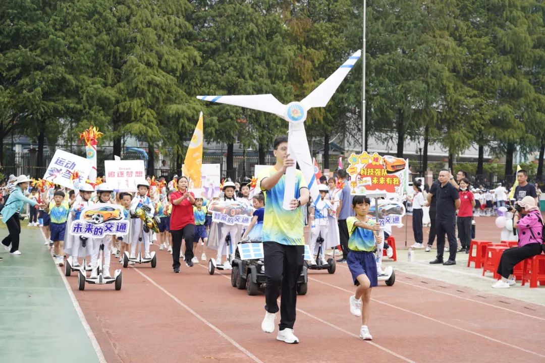 意气风发,开拓进取。五年级方阵的年级主题是岭南风,6个班级凝心聚力,和谐共长,从班牌设计、服装、道具、表演上下功夫,呈现岭南特色,弘扬民族正气!