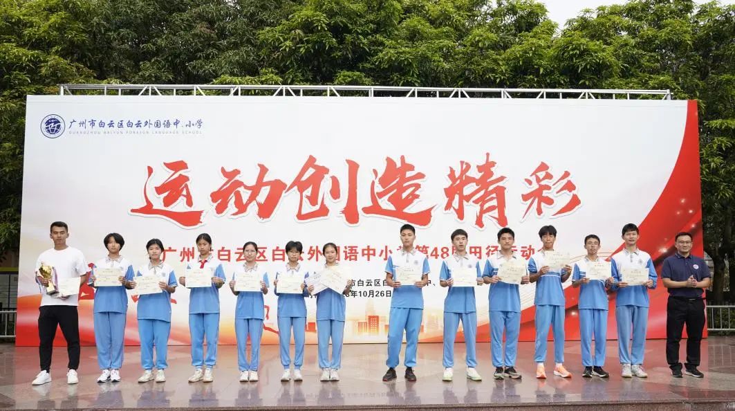 自白云外国语中小学第48届体育节开幕以来,我们陆续进行了中小学“校长杯”篮球赛,组织学生参加新市片运动会,组织教职员工参加线上健步打卡,并在2023年10月26-27日举行了第48届校园田径运动会。10月30日清晨,学校进行了校运会的总结和颁奖仪式,并宣布本届校运会及体育节圆满闭幕。