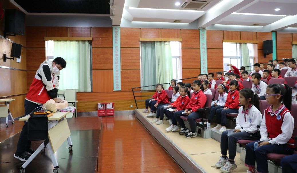 11月17日下午,中国红十字会广州备灾救灾中心的刘老师在学校云山礼堂进行应急救护知识讲授,四年级全体师生认真参与了学习。