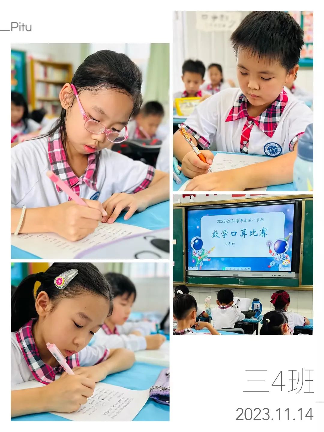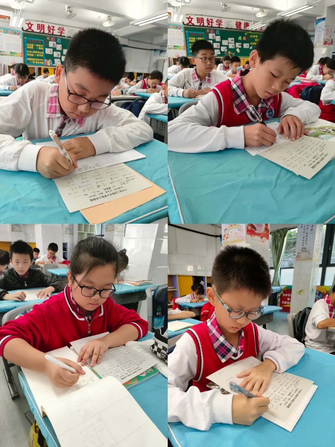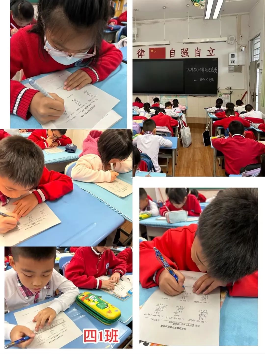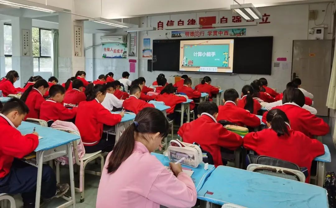 铃声一响,每位学生迅速进入竞赛状态,全神贯注地做好“作战”准备。比赛中,同学们认真工整地书写、作答,细心演算。教室里,只听得笔尖在纸上“刷刷”游走的声音,有的同学眉头紧锁,有的同学下笔如飞,都力争在有限时间里计算出最多的算式,仿佛个个都要争当计算小能手。